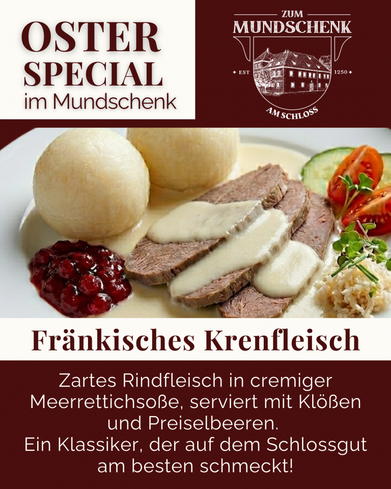 Hoch über der Rodach, auf dem historischen Schlossgut Franken, finden Sie unsere traditionelle Gaststätte – genau dort, wo einst die Ritter von Redwitz speisten. In diesen ehrwürdigen Mauern steht die ehrliche fränkische Küche im Mittelpunkt: Saftige Braten, klassische Klöße, aromatische Soßen und frische Beilagen – alles hausgemacht, regional und mit viel Liebe zum Detail zubereitet.